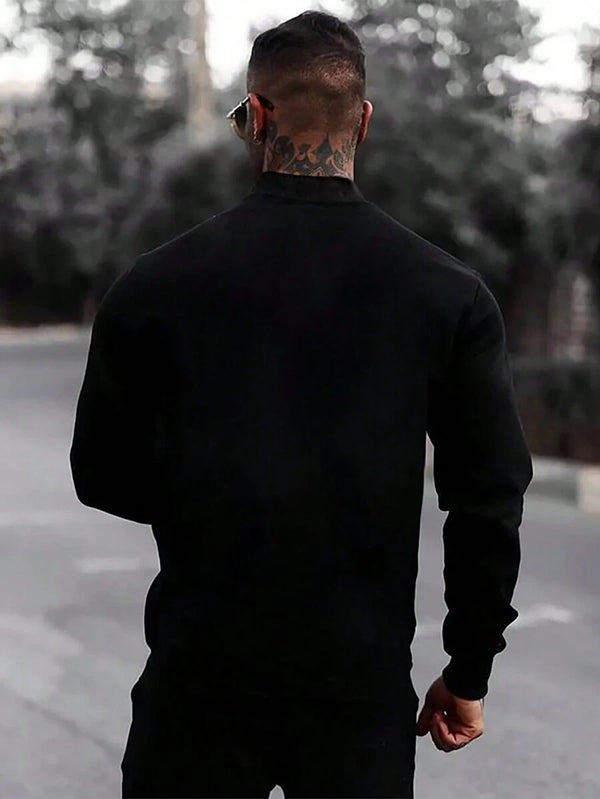 Details : ZipperType : Half PlacketSleeve Type : Drop ShoulderNeckline : Funnel NeckFit Type : LoosePattern Type : PlainHem Shaped : RegularStyle : Business - Business CommutingColor : BlackSleeve Length...