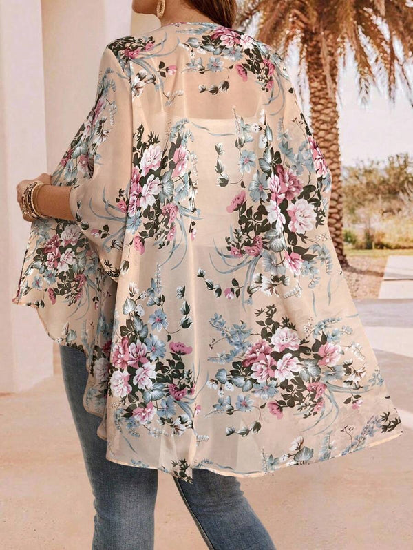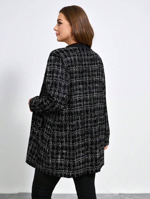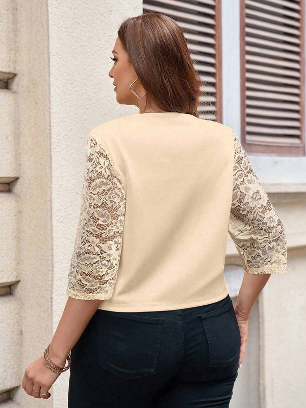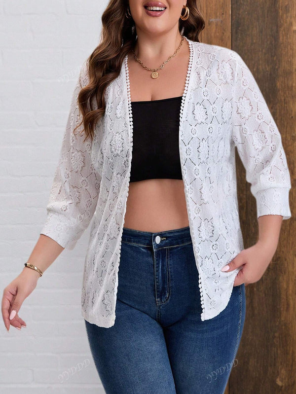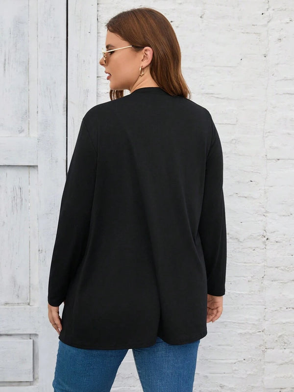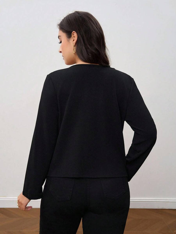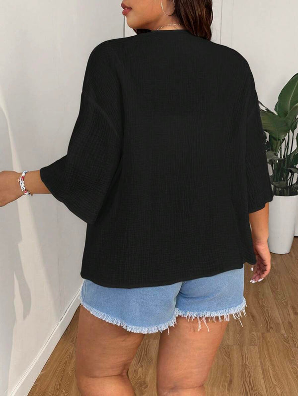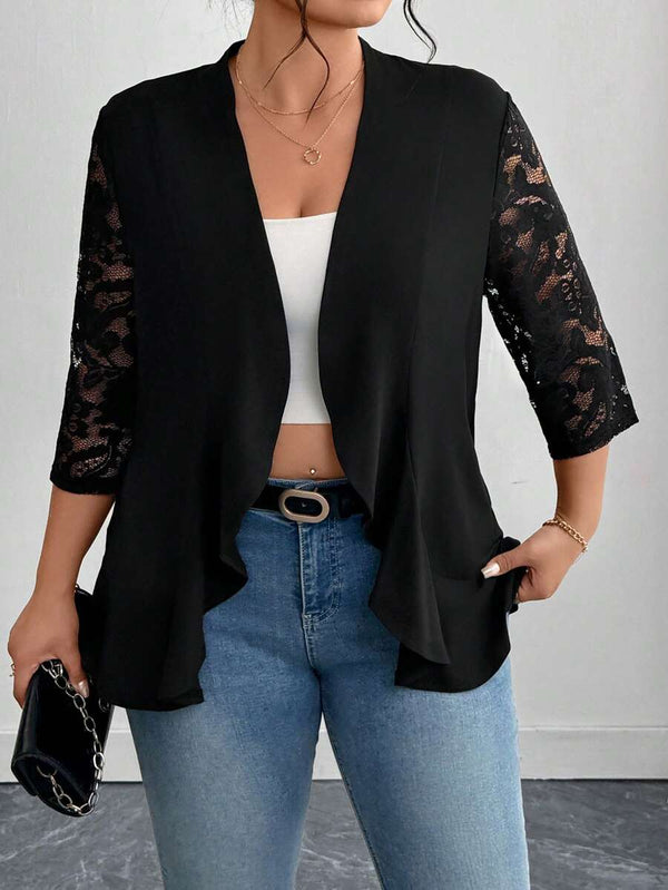 LUNE Textured Fabric Open Front 3/4 Sleeve Fitted Plus Size Jacket Open Front Top Plus...