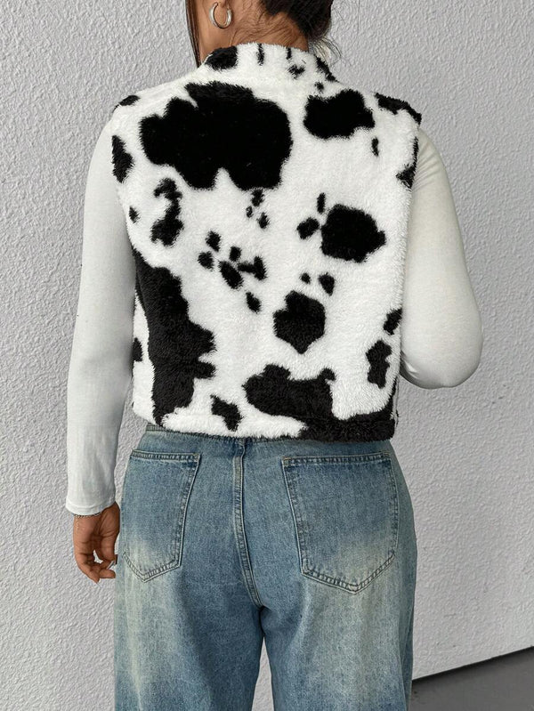 EZwear Plus Size Fashionable Cow Print Jacket, Autumn Winter Fall