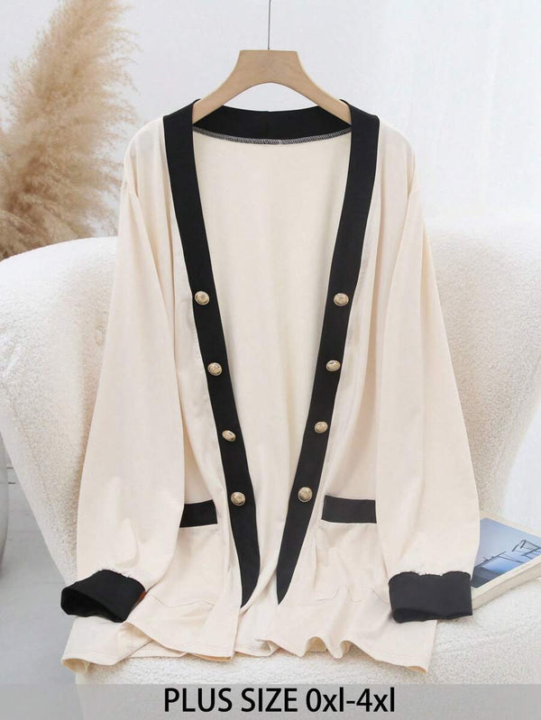 LUNE Plus Size Women Casual Solid Color Cardigan Long Sleeve Jacket Winter Fall Autumn