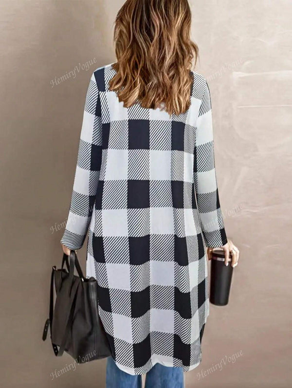 Essnce Plus Size Women Autumn And Winter Fashion Casual Loose Comfortable Black Khaki Geometric Print...