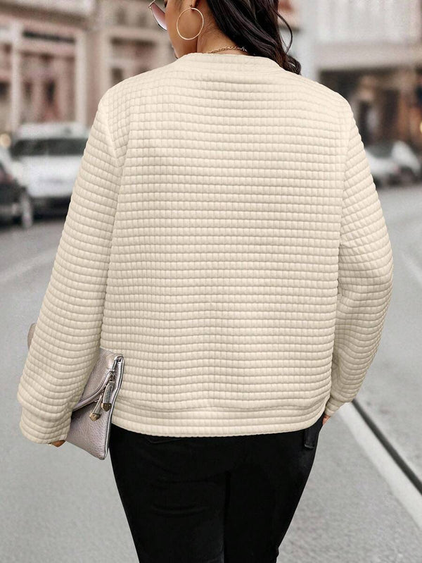 INAWLY Plus Size Casual Solid Color Drop Shoulder Loose Fit Sweatshirt, Autumn/Winter