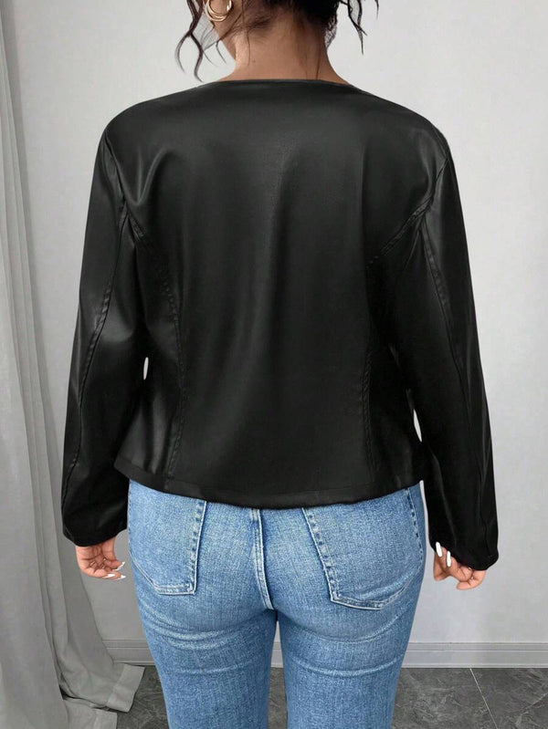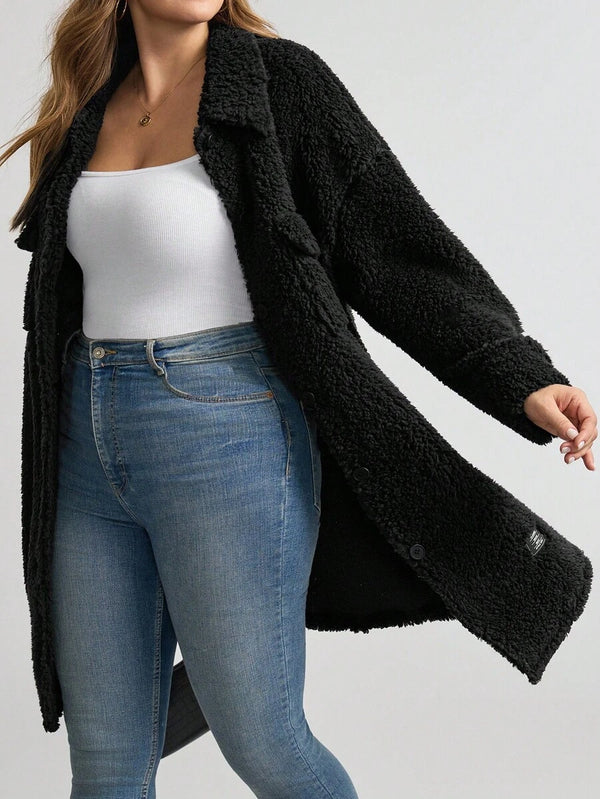 Easura Plus Size Women Casual Fashionable Street Chic Minimalist Solid Color Suede Loose Drop Shoulder...